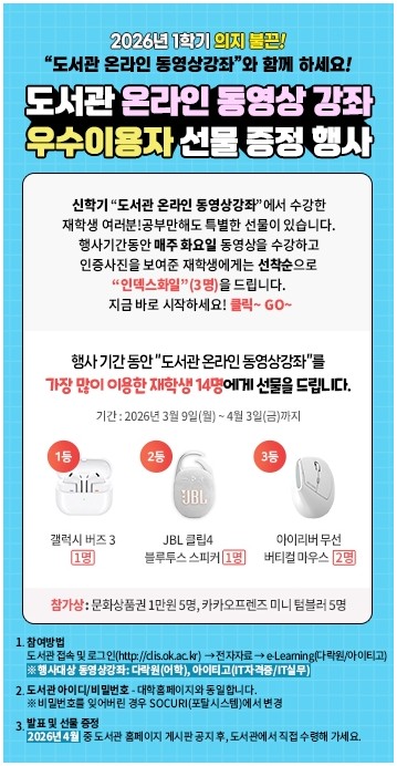 2026학년도 1학기 온라인 동영상강좌 우수이용자 선물 증정 행사 안내